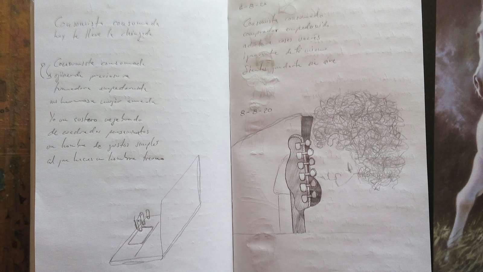 Las páginas contienen el dolor por la convalecencia de mi madre y la felicidad que me llegó cuando Liliana dijo Hola, y me volteó el mundo sin avisar. Supongo que es como aquella entrada Días nublados con un rayo de sol. Pero de hecho, lo primero que hice en ella fue dibujar, la última vez que me quedé a cuidar a mi querido tío Polo, quien falleció al final de ese malpresagioso enero.